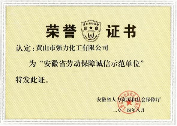 為表彰先進(jìn),樹立典型,在全社會營造用人單位自我規(guī)范、自我約束、誠實守信的良好氛圍,不斷強化用人單位勞動保障管理。黃山市強力化工有限公司在簽訂履行勞動合同、繳納社會保險費、規(guī)范用工行為等方面取得顯著成績,被授予“安徽省勞動保障誠信示范單位”稱號。