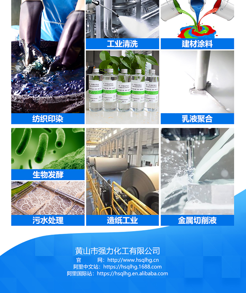 端基型、側(cè)基型及支鏈型聚醚硅油均可作消泡劑。它們均有一個(gè)明確的濁點(diǎn),只有在濁點(diǎn)之上才有很強(qiáng)的消泡性.而在濁點(diǎn)以下則有助長(zhǎng)起泡的作用。此外,利用聚醚硅油的強(qiáng)乳化能力,和硅膏復(fù)配,在水體系中即可自乳化成穩(wěn)定、高效的消泡劑,已廣泛用作聚酯纖維高溫染色,各種潤(rùn)滑油、切削油、防凍液和強(qiáng)酸體系的消泡。