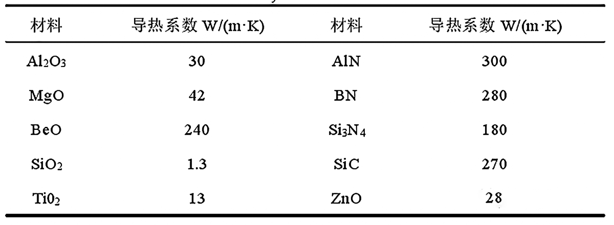 典型絕緣填充料導(dǎo)熱系數(shù)