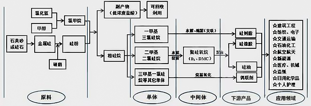 有機(jī)硅本身是一種新興的高性能材料,具有優(yōu)異的耐溫特性、耐候性、電氣絕緣性、生理惰性、低表面張力和低表面能等特性,因此具有極大的科研價(jià)值及應(yīng)用潛力,為整個(gè)材料工業(yè)提供了材料基礎(chǔ)和技術(shù)支撐,被譽(yù)為“工業(yè)味精”以及“科技發(fā)展催化劑”??梢灶A(yù)料,在未來(lái)相當(dāng)長(zhǎng)的一段時(shí)期內(nèi),有機(jī)硅材料仍將繼續(xù)在建筑工程、紡織、電子、交通運(yùn)輸、石油化工、航空航天、新能源、醫(yī)療、機(jī)械、造紙、日化和個(gè)人護(hù)理品等關(guān)乎人們衣、食、住、行的領(lǐng)域?yàn)槿祟?lèi)的生活服務(wù)。