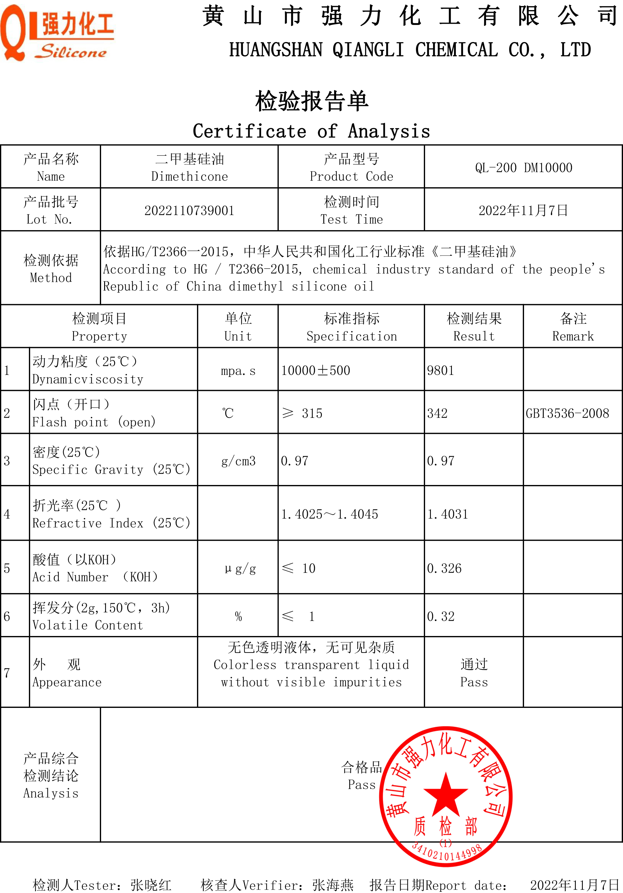 國(guó)產(chǎn)高粘度聚二甲基硅氧烷QL-200 DM10000mpa.s
