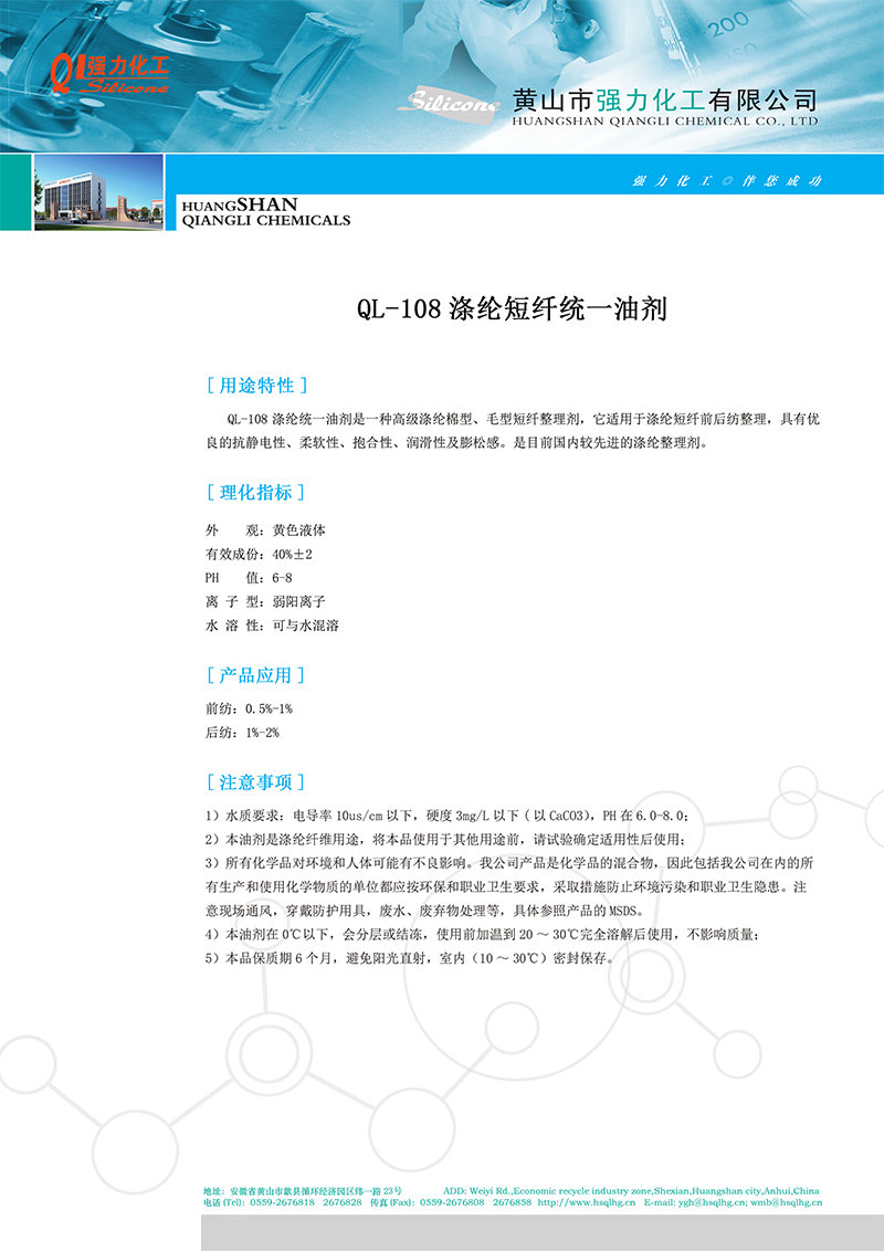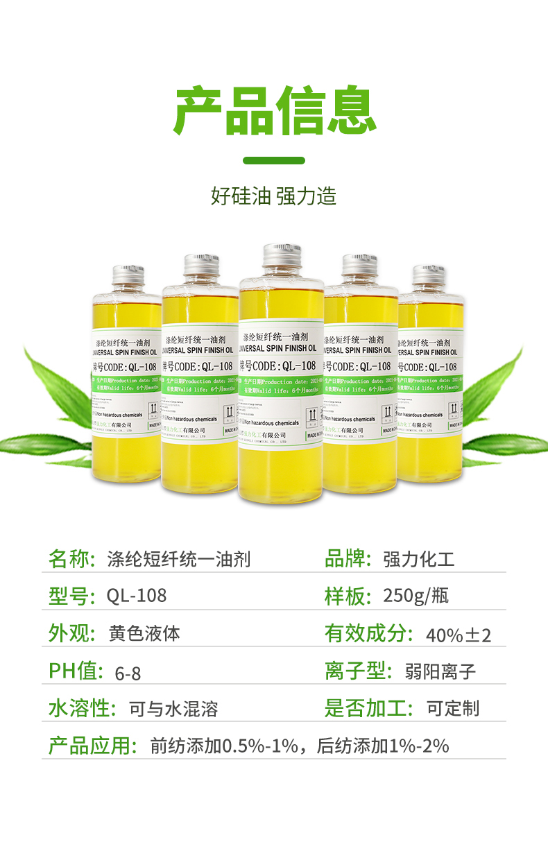 強(qiáng)力滌綸短纖統(tǒng)一油劑QL-108 紡織柔軟劑處理劑