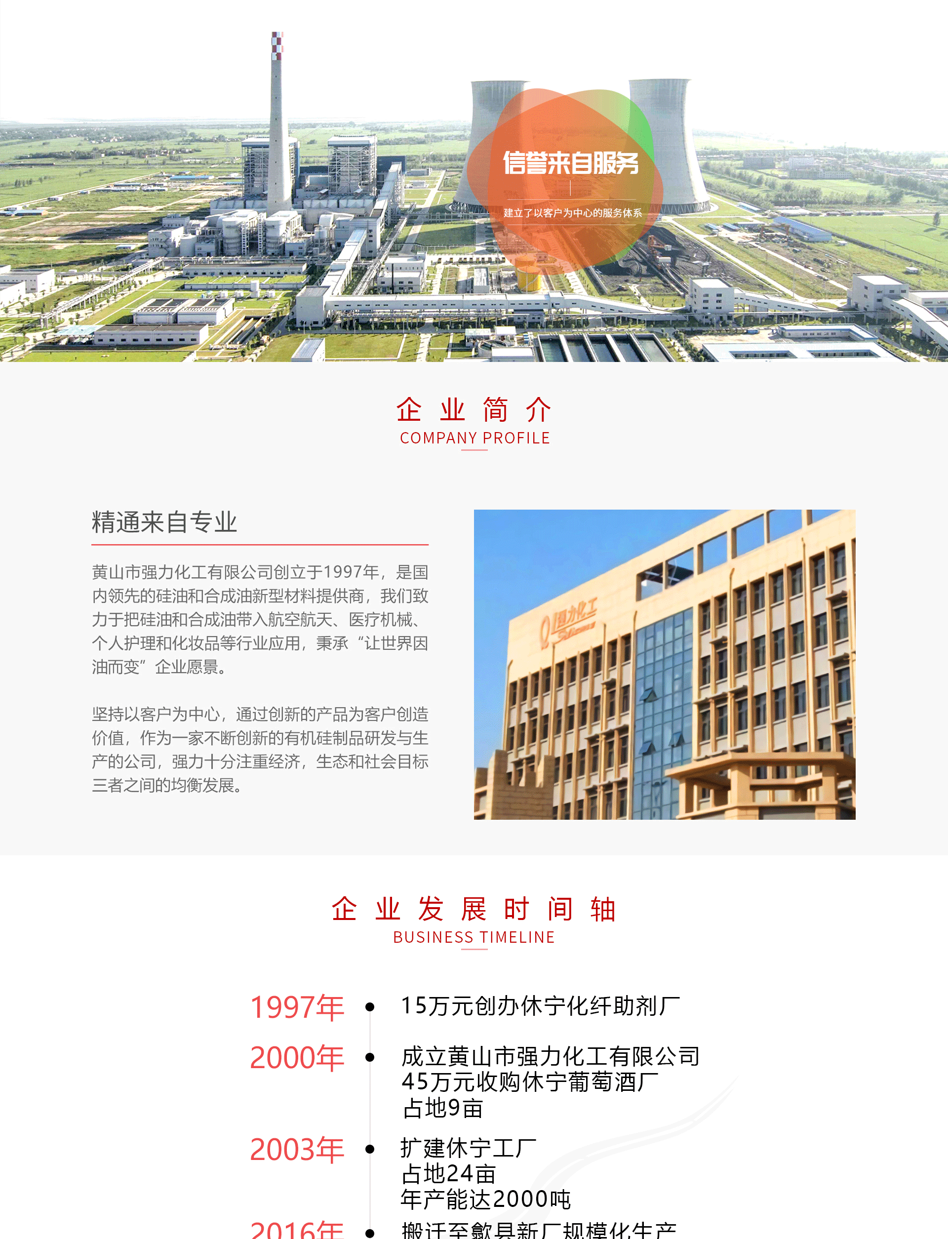 黃山市強力化工有限公司是一家專注于有機硅新材料,集研發(fā)、生產(chǎn)與銷售為一體的綜合性高新技術(shù)企業(yè)。公司已是有機硅行業(yè)內(nèi)較為知名的品牌,傾力于打造高品質(zhì)有機硅產(chǎn)品:二甲基硅油、乙烯基硅油、氨基硅油、乳化硅油、羥基硅油、含氫硅油與紡織品硅油等。砥礪前行,踔厲奮發(fā),強力純硅油,更高技術(shù),更好硅油。